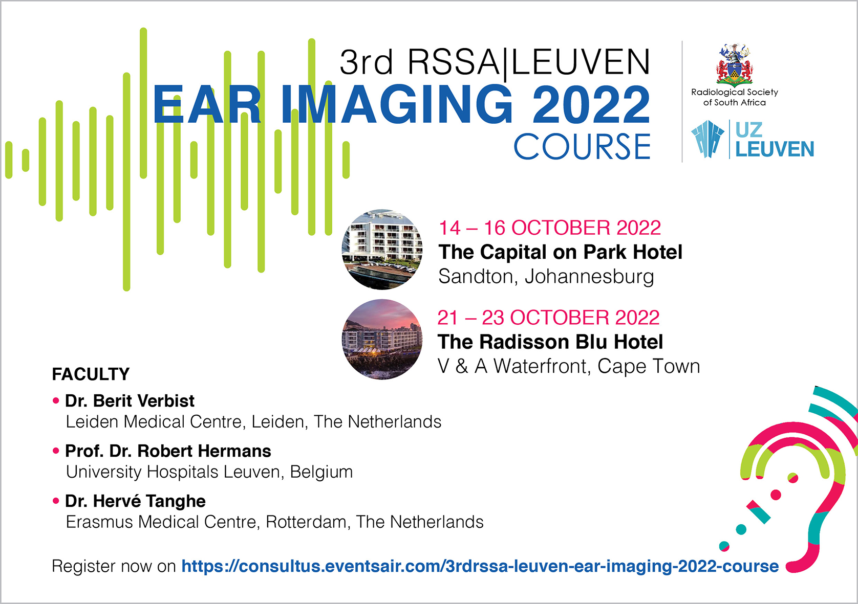 It is a great pleasure and privilege to announce the third and exclusive, back-to-back RSSA/Leuven Ear Imaging Courses on 14-16 October 2022 Capital Hotel, Sandton, Johannesburg and the Radisson Blu V&A Waterfront, Cape Town, 21-23 October 2022.