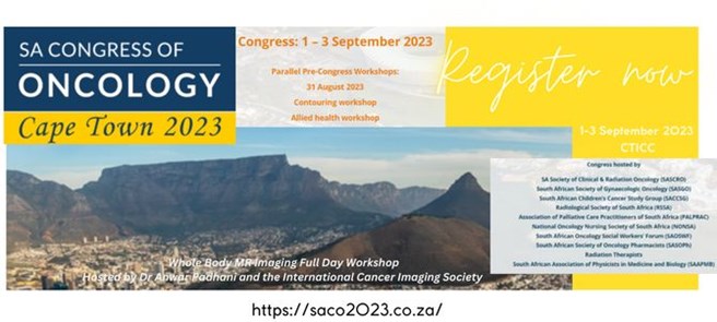 Just a quick reminder of the upcoming SA Congress of Oncology which also includes a Full Day workshop on the Friday of the Congress on Whole Body Imaging hosted by Dr Anwar Padhani (this is an optional registration in addition to the weekend congress).