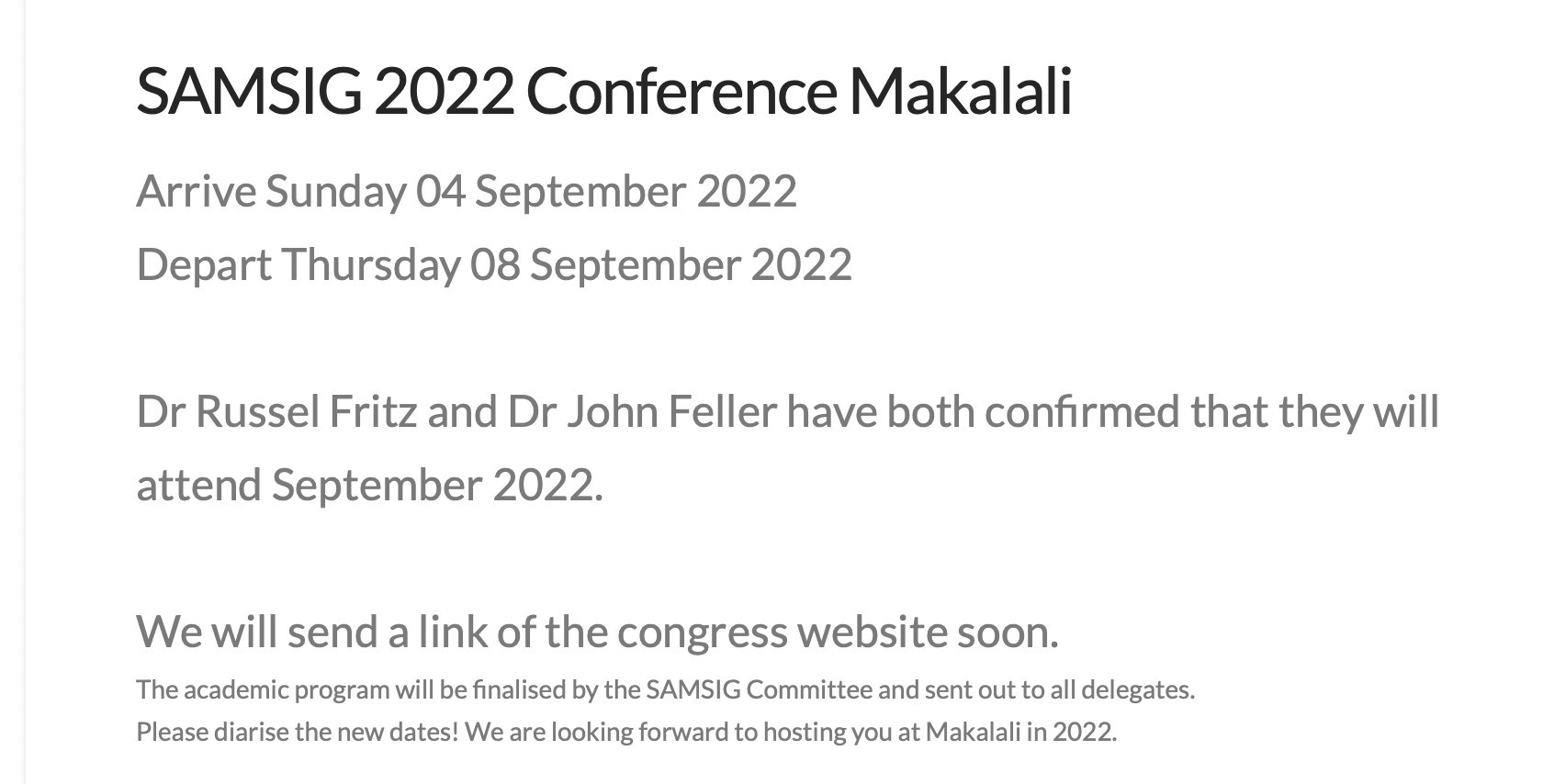We are proud to announce that the SAMSIG 2022 Conference is taking place between 4 and 8 September 2022 at Makalali Private Game Lodge in South Africa.